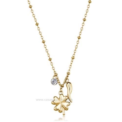 portafortuna | quadrifoglio. la sua simbologia è diffusa in tutte le civiltà. avere un corno portafortuna, lungo e affusolato, sprigiona fortuna e benessere a tutta la famiglia e le generazioni future. collana da donna della brosway in acciaio 316l, pvd oro e cristalli. lunghezza collana 47+6cm
