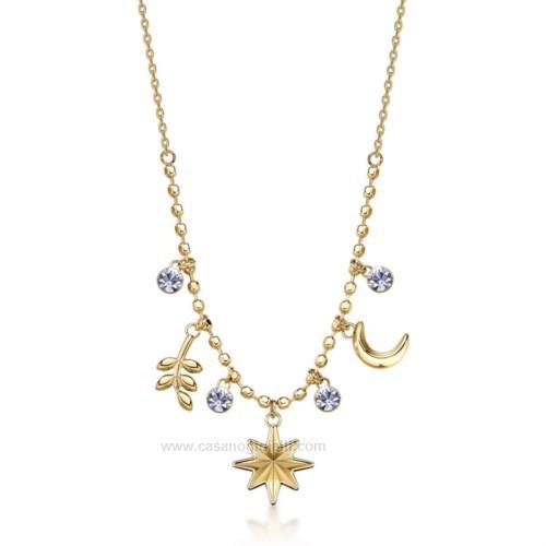 simboli | rosa dei venti. segui la tua stella fortunata che illumina la via dei desideri. sognare ti farà sentire viva ma solo la determinazione potrà trasformare il tuo sogno in una stupenda realtà. collana da donna della brosway in acciaio 316l, pvd oro e cristalli. lunghezza collana 48+6cm