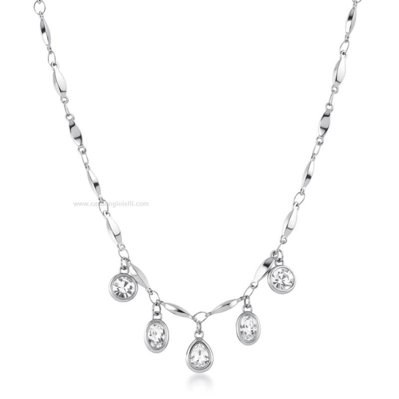 collana da donna della brosway in acciaio 316l e cristalli a forma di goccia, ovale e tondo. lunghezza collana 56cm