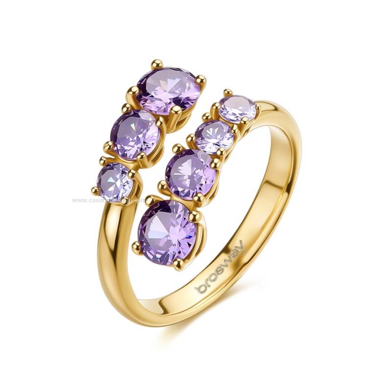 anello da donna della brosway in acciaio 316l, finitura color oro e zirconi. misura 14
