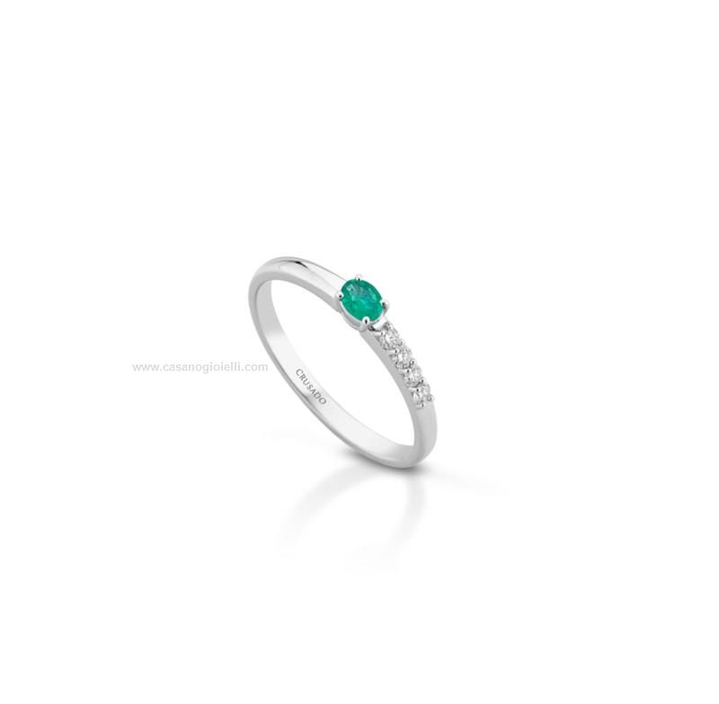 anello con smeraldo ct. 0,16 e diamanti taglio brillante ct. 0,08 colore g purezza vs, realizzato in oro bianco titolo 750/°°