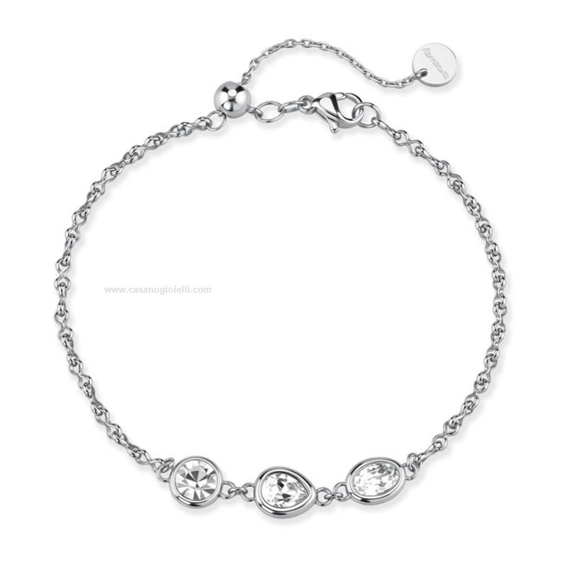 bracciale da donna della brosway in acciaio 316l , con cristalli a forma di goccia, ovale e tondo. lunghezza bracciale 18cm