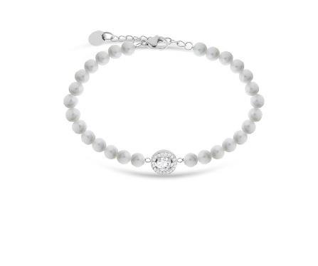bracciale da donna di liu jo, appartenente alla collezione luxury, in acciaio con perle sintetiche e zircone misura 20cm
