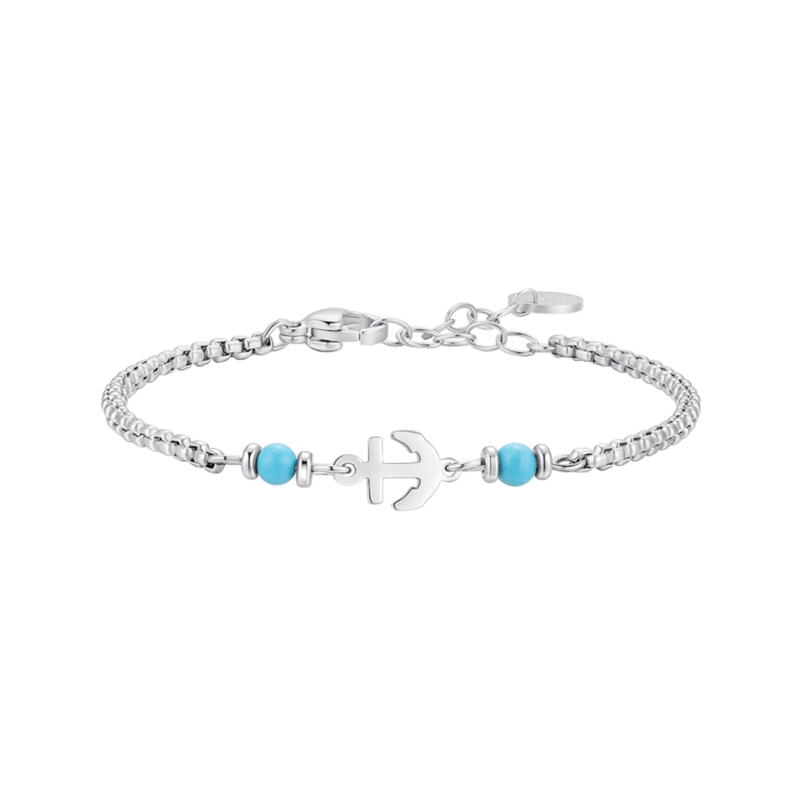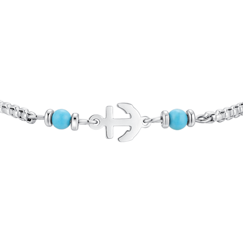 bracciale bimbo in acciaio 316l, con ancora e pietre blu turchesi. lunghezza: 14 + 2 cm