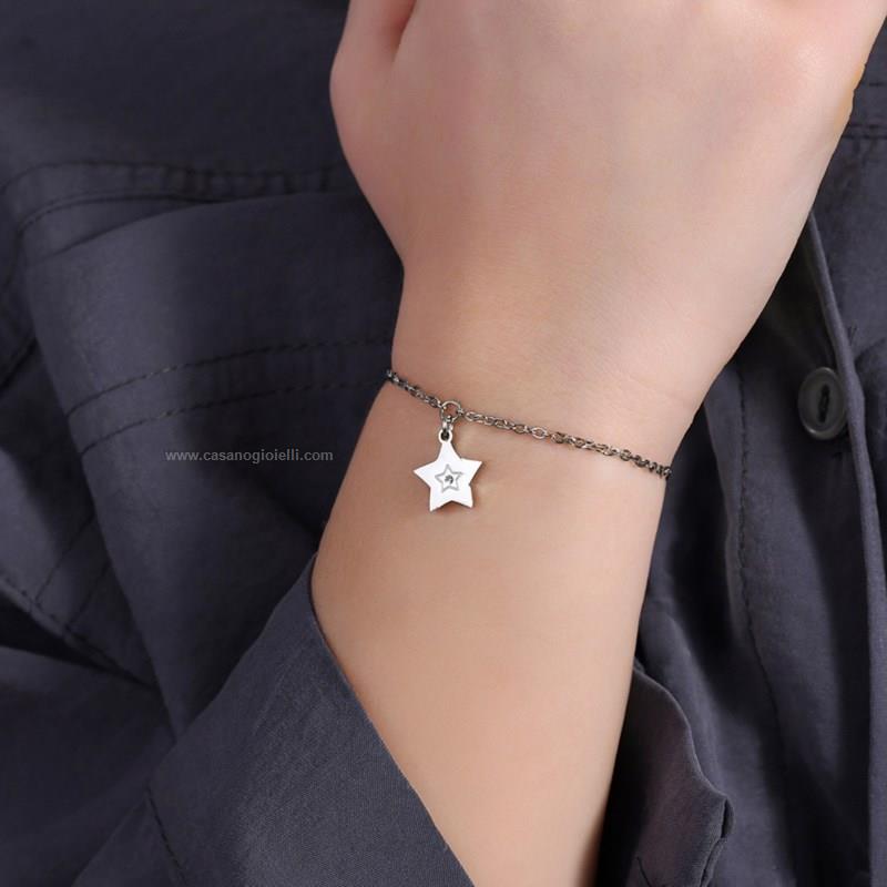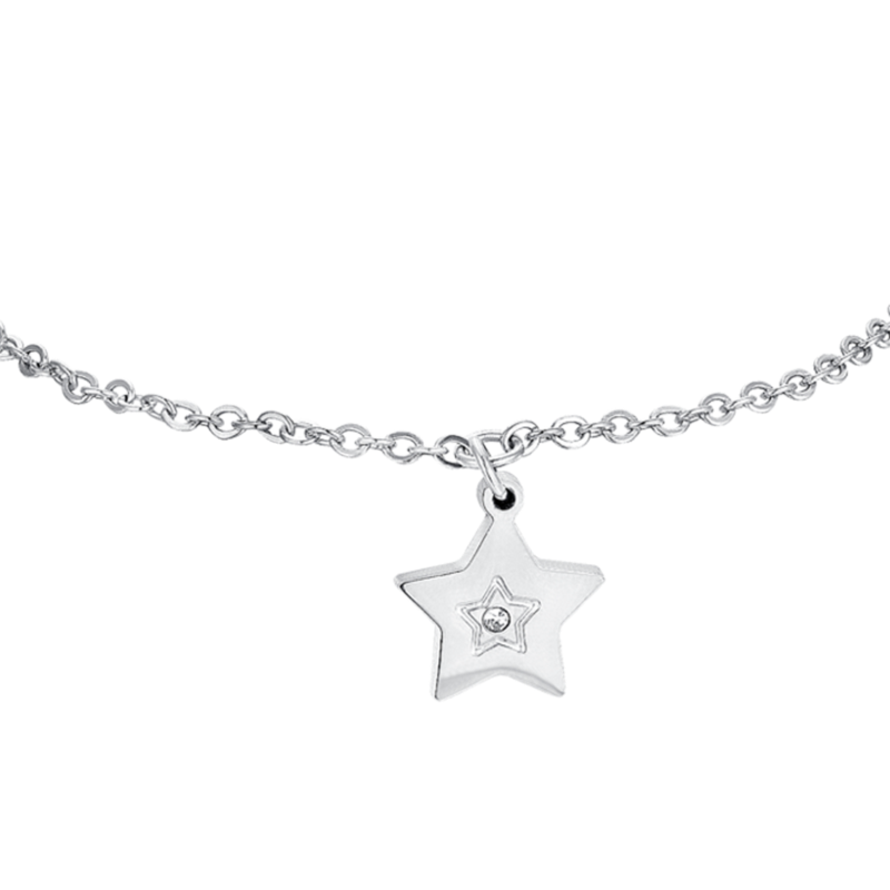 bracciale bimba in acciaio 316l con stella impreziosita da un piccolo cristallo centrale. lunghezza: 14 + 2 cm.