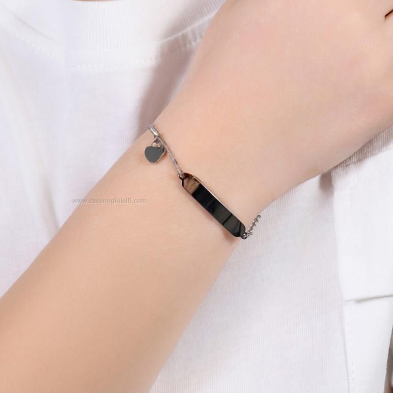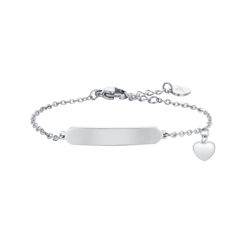 bracciale da bimba con cuore, targhetta da poter incidere, in acciaio 316l, lunghezza bracciale 14+2 cm