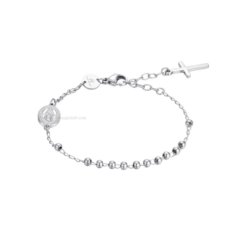 bracciale rosario in acciaio 316l con madonnina miracolosa e croce. lunghezza 16,5+3cm.