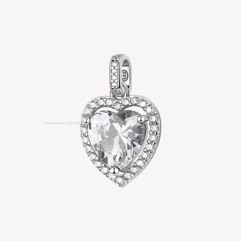 pendente in argento rodiato 925‰ a forma di cuore con cubic zirconia. misura: 1,2cm.