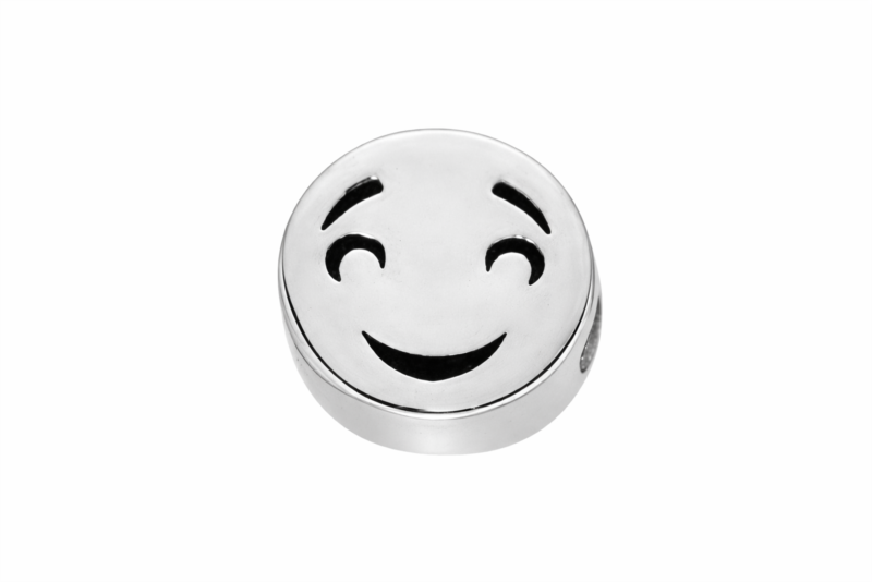 elemento componibile per base bracciale elements, smile in oro bianco titolo 750/°°.simbolo di positività e buonumore, perfetto per personalizzare il proprio bracciale