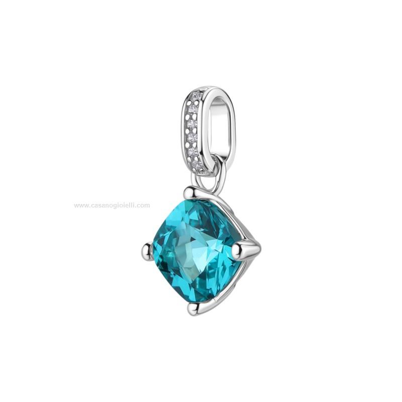 pendente in argento 925‰ con cubic zirconia chiari e cushion cubic zirconia colore paraiba.