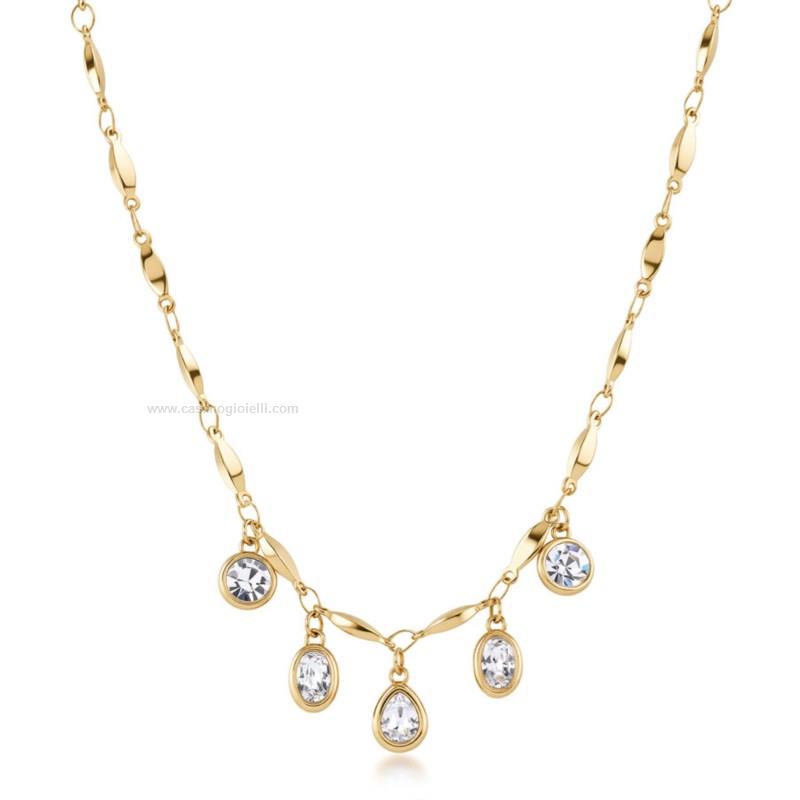 collana da donna della brosway in acciaio 316l e finitura pvd oro 14k e cristalli a forma di goccia, ovale e tondo. lunghezza collana 49+6cm