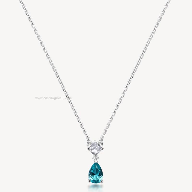 collana da donna della collezione fancy in argento 925‰ con cubic zirconia chiari e pear cubic zirconia colore paraiba lunghezza collana 44 cm