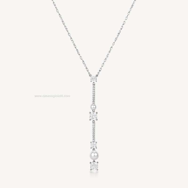 collana girocollo donna della collezione fancy in argento 925‰ con perle di conchiglia e cubic zirconia. lunghezza collana 42 cm