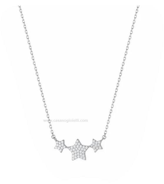 collana da donna di liu jo. il girocollo è realizzato in argento 925, con pendente con stelline e zirconi bianchi. lunghezza regolabile tra i 50 e i 55 cm grazie alla catena di allungo.