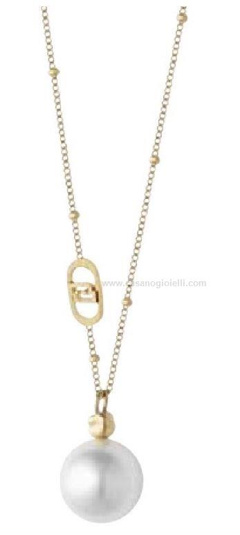 collana donna liu jo appartenente alla collezione essential, in acciaio dorato con perla pendente , misura 45cm