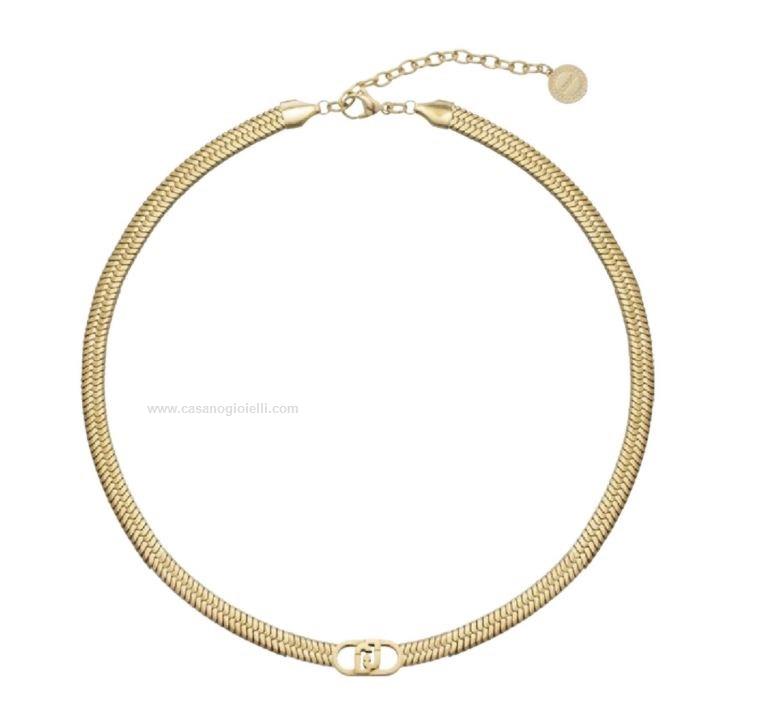collana maglia serpente da donna di liujo della collezione essential in acciaio inossidabile di colore oro con logo misura 45cm