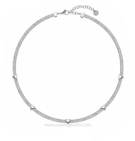collana maglia serpente da donna di liujo della collezione essential in acciaio inossidabile con cuori misura 55cm