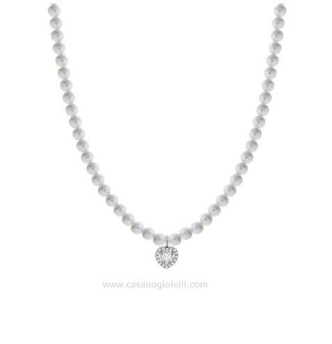 collana da donna di liu jo, appartenente alla collezione luxury, in acciaio con perle sintetiche e zircone a forma di cuore