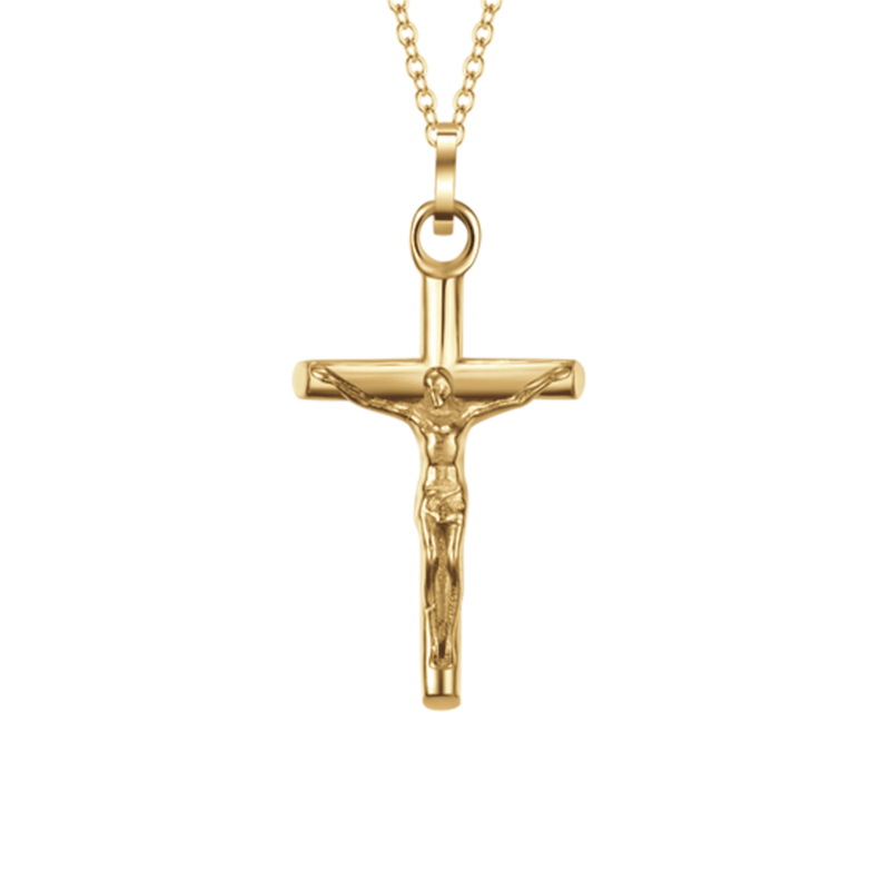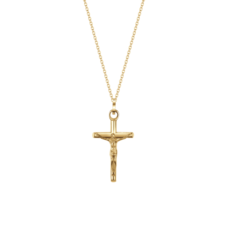 collana da uomo, con crocifisso, in acciaio 316l, con finitura color oro, lunghezza collana 45+5cm