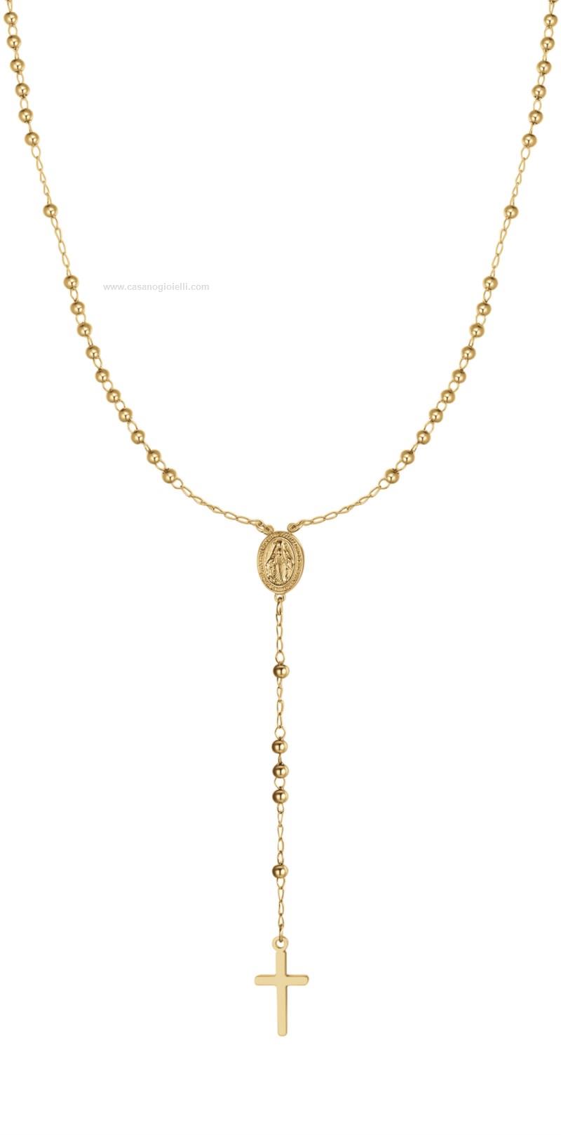 collana rosario pendente in acciaio 316 l con finitura color oro e medaglietta con madonnina miracolosalunghezza:50+8.5 cm diametro sfera: 3 mm