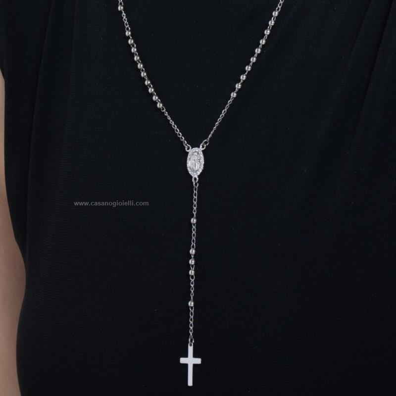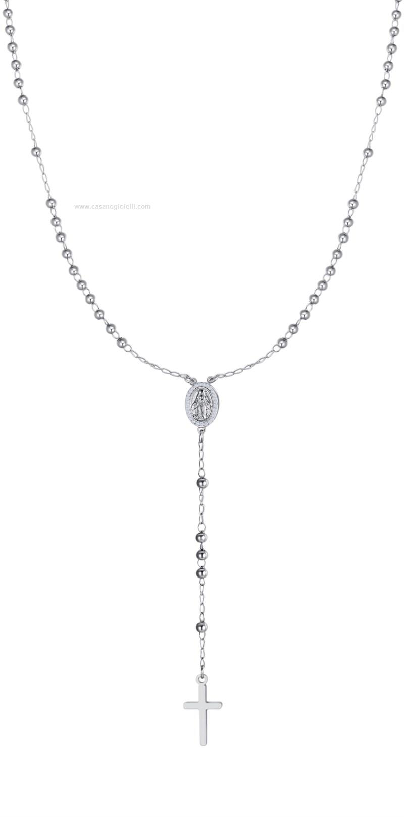 collana rosario in acciaio 316 l,medaglietta con madonnina miracolosa e zirconi bianchi lunghezza:50+8.5 cm diametro sfera: 3 mm