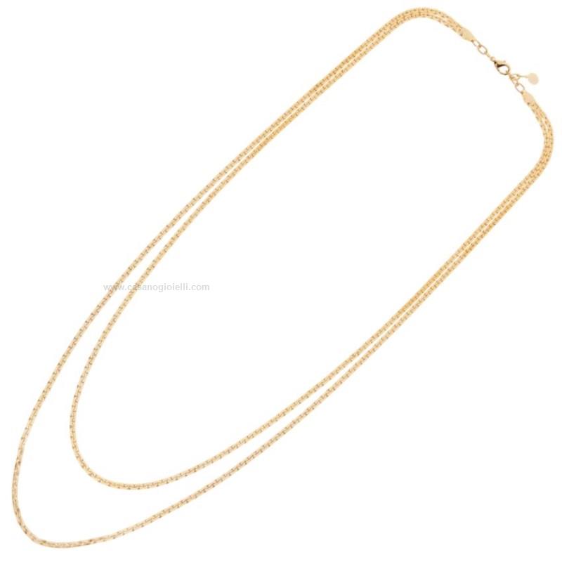 collana da donna, pensata per chi ama esprimere la propria femminilità con uno stile luminoso e sofisticato. realizzata in metallo dorato con trattamento di cataforesi, caratterizzata composizione a più elementi sovrapposti, studiata per creare un raffinato effetto di profondità e movimento. la finitura lucida valorizza la struttura del gioiello donando un aspetto brillante e ricercato, ideale sia per l’uso quotidiano che per le occasioni speciali. la lunghezza regolabile da 43 cm a 48 cm consente una vestibilità confortevole e personalizzata, mentre la chiusura a moschettone garantisce sicurezza e praticità. una collana perfetta da indossare come protagonista dell’outfit o da abbinare ad altri gioielli