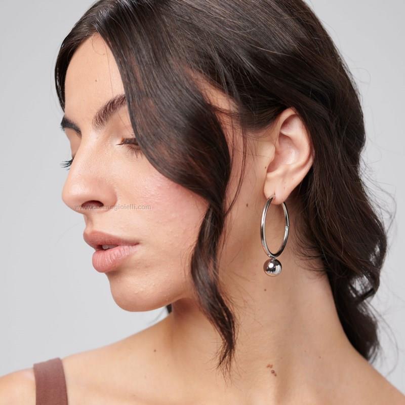 orecchini a cerchio in acciaio 316l e pendenti a sfera. misura orecchini: 4,6cm
