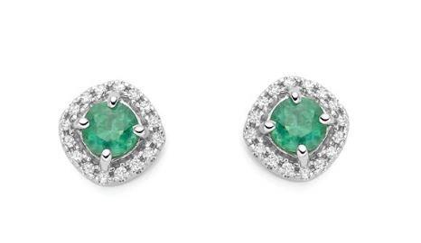 orecchini con smeraldo ct. 0,40 contornato da diamanti taglio brillante ct. 0,08 colore g purezza si, realizzato in oro bianco titolo 750/°°.