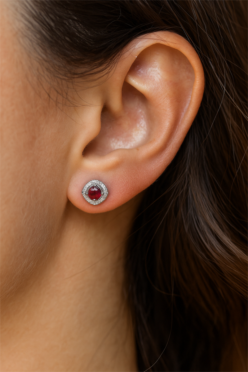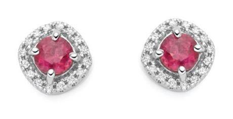 orecchini con rubino ct. 0,40 contornato da diamanti taglio brillante ct. 0,08 colore g purezza si, realizzato in oro bianco titolo 750/°°.