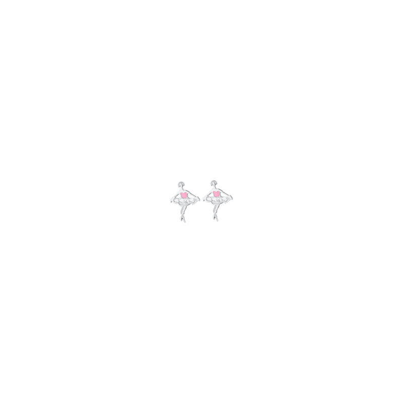 orecchini in acciaio 316l a forma di ballerina , decorata con smalto rosa e picooli cristalli.