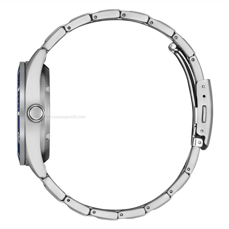 orologio uomo citizen della collezione of collection, caratterizzato da uno stile sia sportivo che elegante. quadrante 40mm di colore blu protetto da vetro minerale resistente ai graffi e bracciale in acciaio 316l. datario a ore 3 e resistente all'acqua 5 atm. l'orologio automatico, consente il funzionamento grazie al movimento naturale del polso, senza bisogno di batteria.