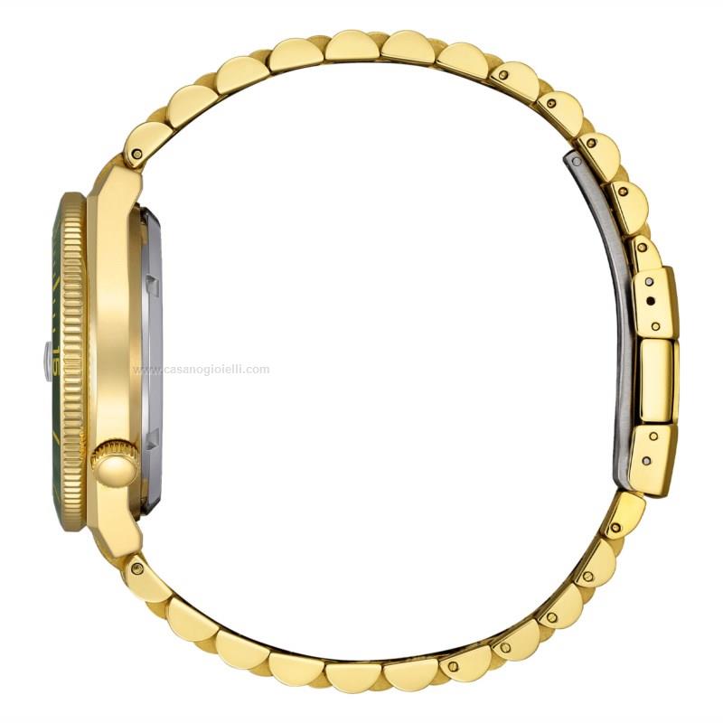 orologio citizen dal design moderno,perfetto per chi desidera un automatico elegante ma con carettere sportivo.cassa da 40mm in acciaio 316l,quadrante verde petrolio con finitura soleil protetto da vetro zaffiro resistente ai graffi.cinturino in acciaio dorato che richiama perfettamente le lancette e gli indici oro del quadrante datario a ore 3 con lente di ingrandimento e resistente all'acqua 5 atm