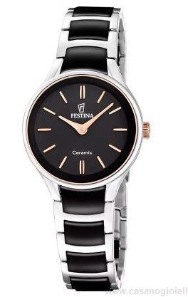 orologio donna festina dal design elegante e luminoso, realizzato con scatola ceramica e vetro minerale, dotato di cinturino acciaio ceramico. il quadrante nero con le lancette rosè ,dona profondità e raffinatezza, rendendolo perfetto per ogni occasione. dotato di movimento al quarzo analogico con funzione solo tempo, presenta una cassa in acciaio da 30mm, cinturino in ceramic e impermeabilità 3 atm, resistente agli schizzi.