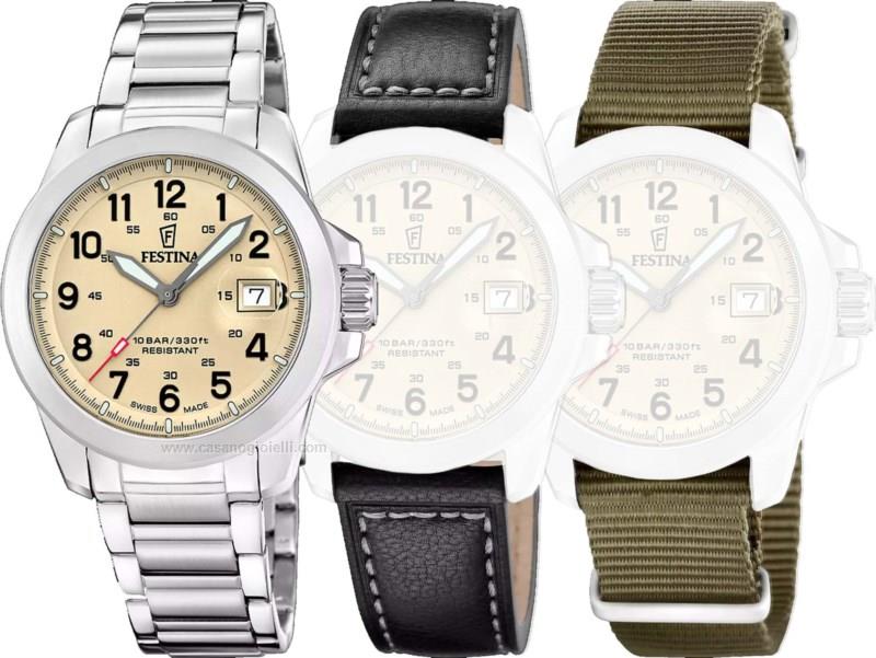 orologio da uomo festina swiss made field f20081/2 con tre cinturini intercambiabili