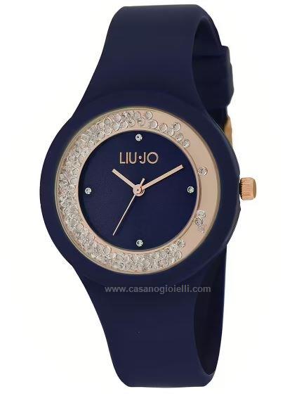 orologio solo tempo da donna di liu jo della collezione dancing sport. orologio con cassa in acciaio inossidabile e silicone del diametro di 38 mm e quadrante di colore blue. cinturino in caucciu di colore blu. vetro: minerale, pietre: esclusivi cristalli mobili sul castone. la resistenza all'acqua è di 5 atm e movimento al quarzo