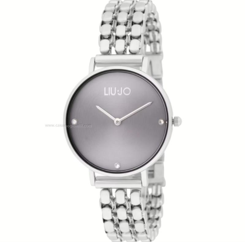 orologio liu-jo elegante da donna della collezione framework, caratterizzato da uno stile minimal ma luminoso. presenta cassa rotonda in acciaio da 32 mm e bracciale in acciaio 316l, che lo rendono raffinato e adatto sia all’uso quotidiano che alle occasioni speciali. il quadrante grigio analogico, impreziosito da indici con cristalli, dona un tocco femminile e moderno. è dotato di movimento al quarzo, vetro minerale resistente e impermeabilità fino a 3 atm, ideale per l’uso di tutti i giorni.